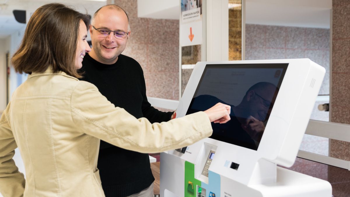 Using these healthcare kiosks equipped with a scanner, patients can complete their admission-related paperwork themselves. They can register, print their stickers and circulation card, enter their social security and private health insurance cards and pay what they owe in less than 5 minutes!