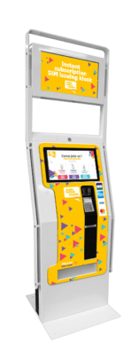 Ya implementada en Francia para el operador Free Mobile, esta solución permite elegir un plan, pagar y recuperar instantáneamente su tarjeta SIM. El terminal presentado en el salón del MWC ofrece una nueva funcionalidad: la de pagar con tarjeta bancaria o en efectivo (monedas y billetes).