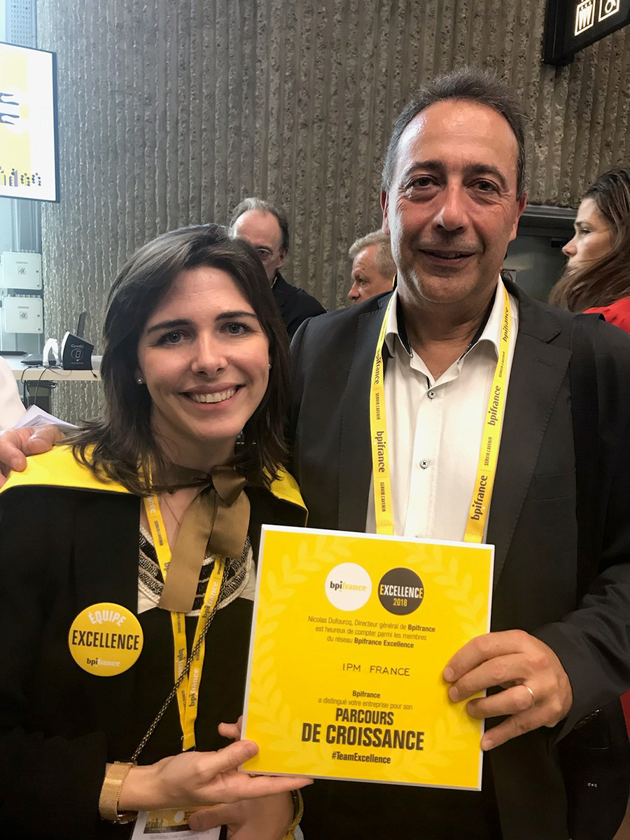 Con motivo de la 4ª edición de bpifrance inno generation el día 11 de octubre de 2018 en el AccorHotels Arena de París, Nicolas Dufourcq, Director General de Bpifrance, otorgó este diploma de excelencia a IPM France.