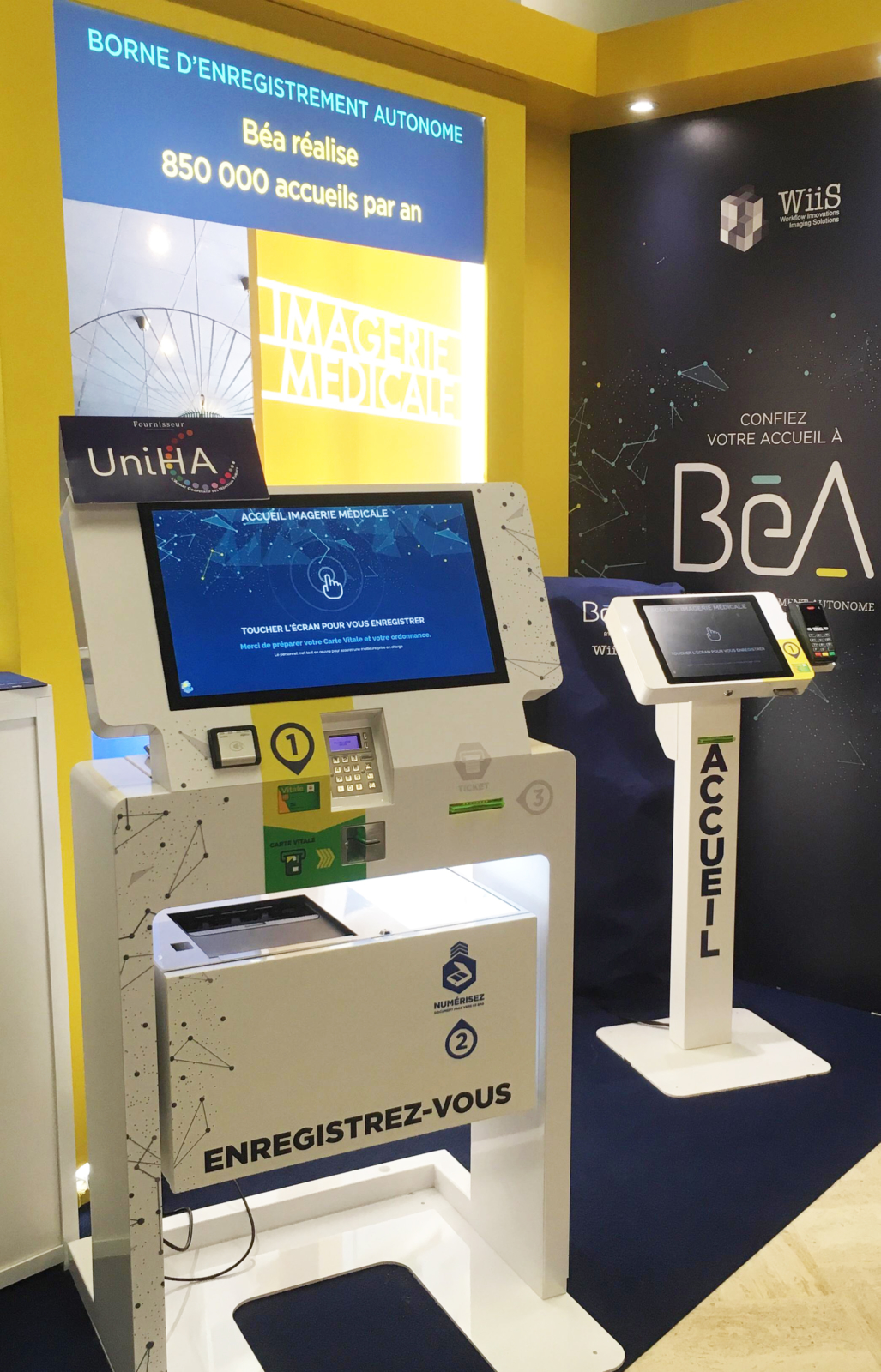 A cette occasion, WiiS présente sur son stand (116B, hall Passy) sa solution d’enregistrement et gestion de workflow patient "BeA, Borne d’Enregistrement Autonome".